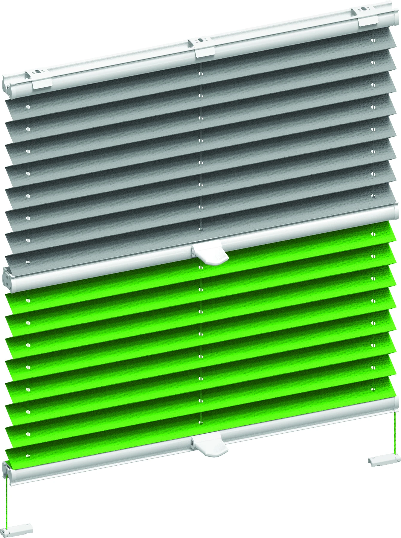 - Selbstbremsende Steuerung, mit der Sie das Plissee in jeder Höhe einstellen können.